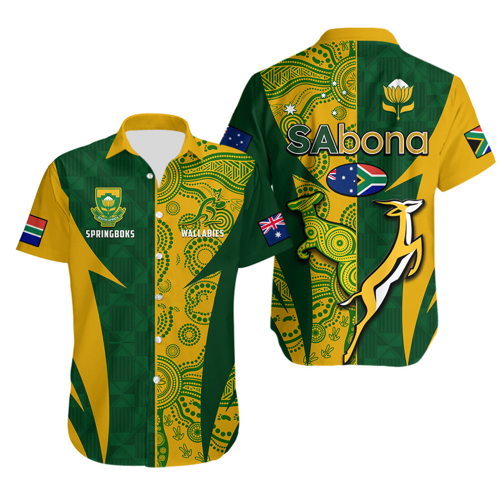 (Sabona) Australia Rugby and South Africa Rugby Hawaiian Shirt Wallabies Mix Springboks Sporty LT14
