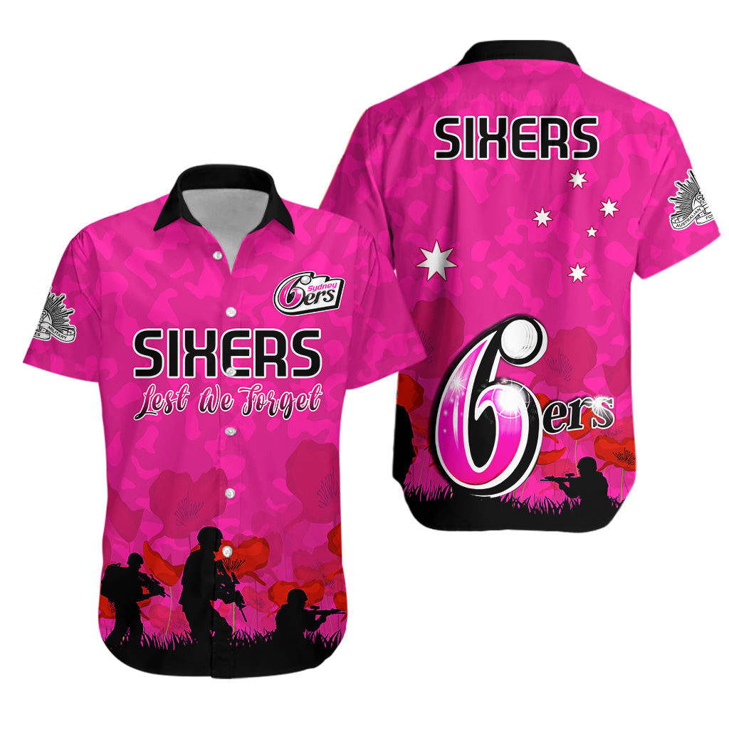 Sydney Sixers Cricket Hawaiian Shirt Anzac Day Camouflage Poppy Lest We Forget LT13